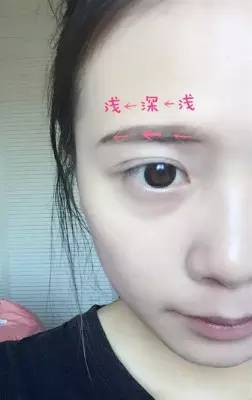 用眉粉填滿整個(gè)眉毛。中間深、兩邊淺會,比較自然。所以先涂中間,用余下的粉涂兩邊