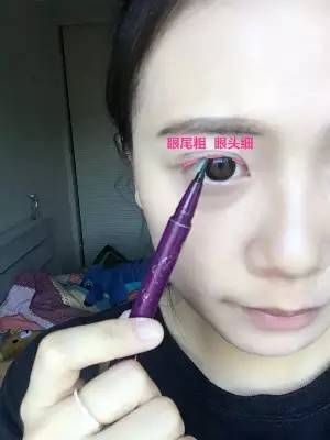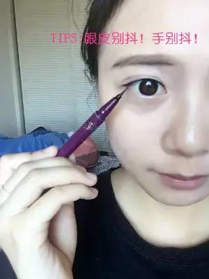 1.我建議剛學(xué)畫眼線的童鞋,使用液體眼線筆。畫眼線首先在眼頭、眼中、眼尾各畫上一筆,定好每個(gè)位置眼線的粗細(xì)。一般來說都是眼頭細(xì),眼尾粗。