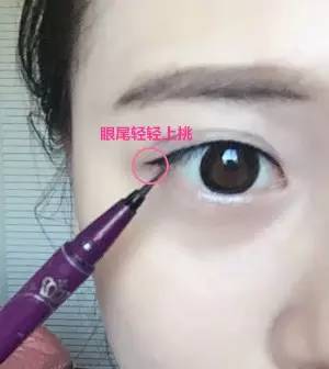 3.最后畫眼線的時(shí)候記住眼尾要輕輕向上挑