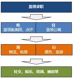 在過(guò)去一年來(lái),如雨后春筍般地出現(xiàn)了很多基于移動(dòng)互聯(lián)網(wǎng)的藍(lán)領(lǐng)招聘公司,是因?yàn)樵絹?lái)越多的人看到了這個(gè)方向蘊(yùn)藏著巨大商機(jī)。我認(rèn)為,藍(lán)領(lǐng)人群的切入思路可從求職入手,解決基本的收入需求,然后通過(guò)吃、住、用、行來(lái)提升活躍度,后續(xù)衍生出社交、娛樂(lè)、培訓(xùn)、婚戀等多個(gè)維度的解決方案。(示意圖如下)信息源:揭陽(yáng)人才網(wǎng)_m.shroysun.com