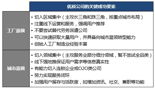 工廠藍(lán)領(lǐng)目前主要依靠線下勞務(wù)派遣公司,互聯(lián)網(wǎng)模式需要配合較強(qiáng)的線下運(yùn)營(yíng)能力才可能切入,可以考慮的方向?yàn)椋?/p>